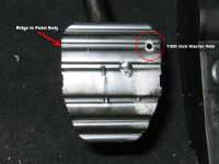- If you do not like the location of the bolts on my gas pedal, pick your own. Just make sure that which ever holes you choose there is enough room behind the pedal that when its completely depressed the nut/bolt securing the pedal does not get in the way. Remember measure twice, drill once!