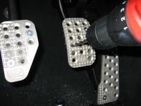 - Unlike the gas and clutch pedals the brake pedal is steel. This obviously makes it a hell of a lot harder to drill.