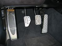 - Start by pulling off the rubber OEM pad - just reach behind it and pull it off. Might as well pull the brake pedal pad off now too.