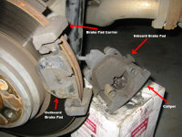 - Your outside brake pad will stay on the brake pad carrier, just lift it out and set it aside (don't toss it yet!).