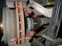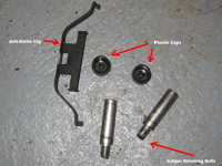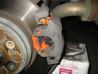 - Use brake cleaner to thoroughly clean both the runners on brake pad retaining bracket and the caliper (particularly the piston and the outboard arms).