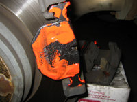 - Apply a liberal amount of anti-squeal compound to the new pads in the area where they will contact the caliper and piston (use the old pads as a template).
