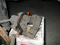 - Gently push the pad toward the center of the caliper to release - keep in mind that if you are working on the passenger rear brake the wear sensor wire will still be attached. On the passenger side, simply use a small screwdriver to pop the brake wear sensor up and out of the recess in the top edge of the inboard brake pad. If you need pictures to figure this out - look in the Front Brake Pad DIY.