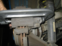 - CAUTION: Watch brake fluid level in the brake fluid reservoir as you compress the piston. You're compressing the system with the clamp and forcing fluid out of the caliper - make sure the fluid reservoir does not over flow - there is nothing worse than brake fluid for paint - if the reservoir gets close to overflowing, use a turkey baster, etc. to siphon off a little fluid. Do not siphon off any more than required to keep it from overflowing. Make sure to replace what ever fluid you siphon off with NEW fluid after you're done.