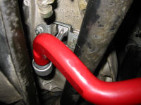 - Once the sway bar is in place, line up the end links in the brackets and slide the bolts in to keep them in place.