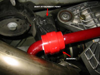 - The location of the bushings should line up with the attachment points for the brackets (removed in step 2).