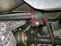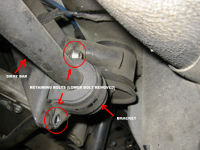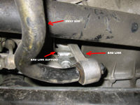 - If you reach up above the suspension arm and feel around the top of the bracket you will feel a bolt that goes through the bracket and attaches the end link. You will need to remove this bolt to drop the end link out and with it the sway bar itself.