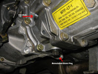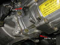 - The drain and fill plugs are located on the driver's side of the transmission.
