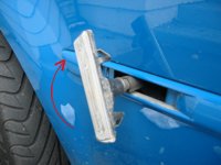 - Take a small flat screwdriver and insert it at the forward edge of the side marker light housing. Be careful not to scratch the paint!