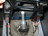 - Follow the wire that runs down from the stock knob to a connector.