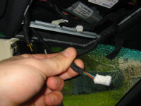 - Pull about 6" of the cord out through the edge of the headliner in all.