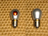 Once you open the package, the disappointment starts to set in. What you get are bulbs that are spray painted (and not well at that) with silver paint. On one side of the bulb a circle roughly half inch in diameter is left unpainted, exposing the orange glass of the original bulb. The bulbs are all painted with the unpainted part pointing toward the right when installed in the car (the bulbs only mount one way) meaning that the bulb to your left have the unpainted circles pointed to the outside and the bulbs to the right have the unpainted circles pointing inside. Thus, the orange unpainted circle is visible from the left side of the vehicle. The side marker bulbs are totally painted over.